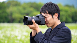 写真撮影する男性・正面