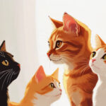 白を基調としたやさしい背景の中で、猫が凛とした姿勢で前方を見つめるイラスト。柔らかな光に包まれた毛並みや、穏やかで知的な表情が印象的で、静かな時間の流れを感じさせる。シンプルな構図が猫の存在感を際立たせ、癒しと温もりを伝える一枚。