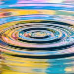 静かな水面に一石を投じた瞬間に生まれる、幾重にも重なる同心円の美しさを捉えた一枚。夕焼けや木々の緑を映し出したような鮮やかなリフレクションが、波紋の広がりとともに幻想的なグラデーションを描き出しています。一瞬の静寂と動きが共存する、まるでキャンバスに絵具を広げたような抽象的で芸術的な一景です。